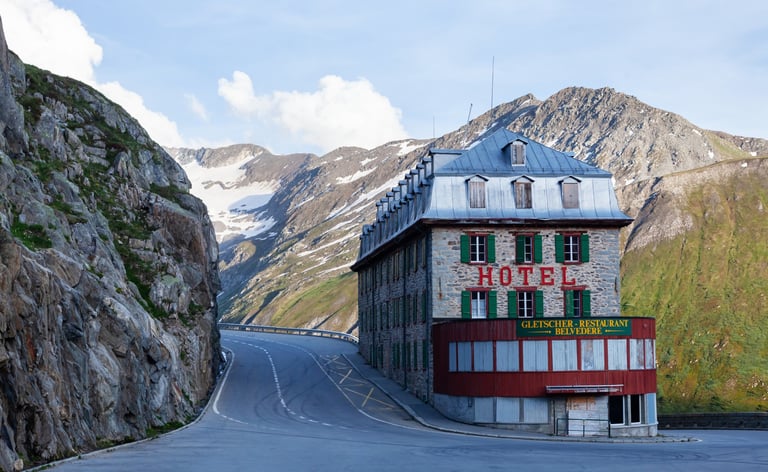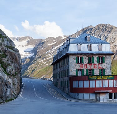 A road of pure drama — hairpins carved into cliffs, glaciers hanging overhead, and the iconic Hotel Belvedere. Its conquest adds 10 Explorer Points to your soul.