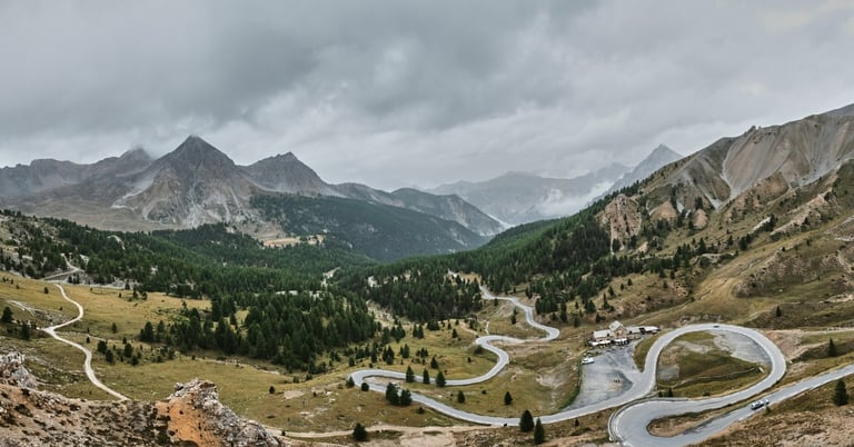 From Jausiers start the final fixed route, and the Alps rise like a cathedral of stone and sky. Here, agony and wonder become inseparable. Each pass is a prayer, each summit an altar.