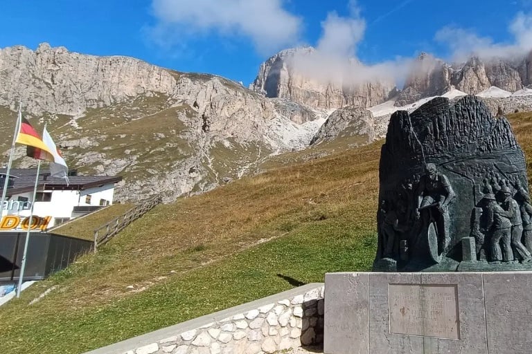 The Pordoi is pure cycling mythology. At its summit stands a monument to Fausto Coppi, Il Campionissimo, and every rider who ever dared to defy gravity. To crest here is to touch the very soul of the sport.