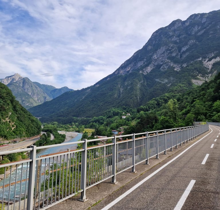 The route covers more than 400 Km of the best paved bike paths. The Sentiero Valtellina segment, connecting Bormio with the start of Mortirolo along the Adda river ist just amazing.