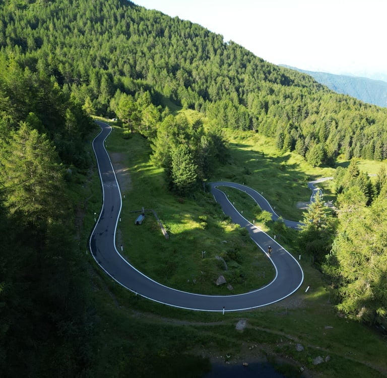Crossing into South Tyrol, the Reschen Pass greets riders with the haunting sight of a church tower rising from Lake Resia’s turquoise waters. It is both a gateway and a symbol: the passage into a world of high mountains and unrelenting beauty.