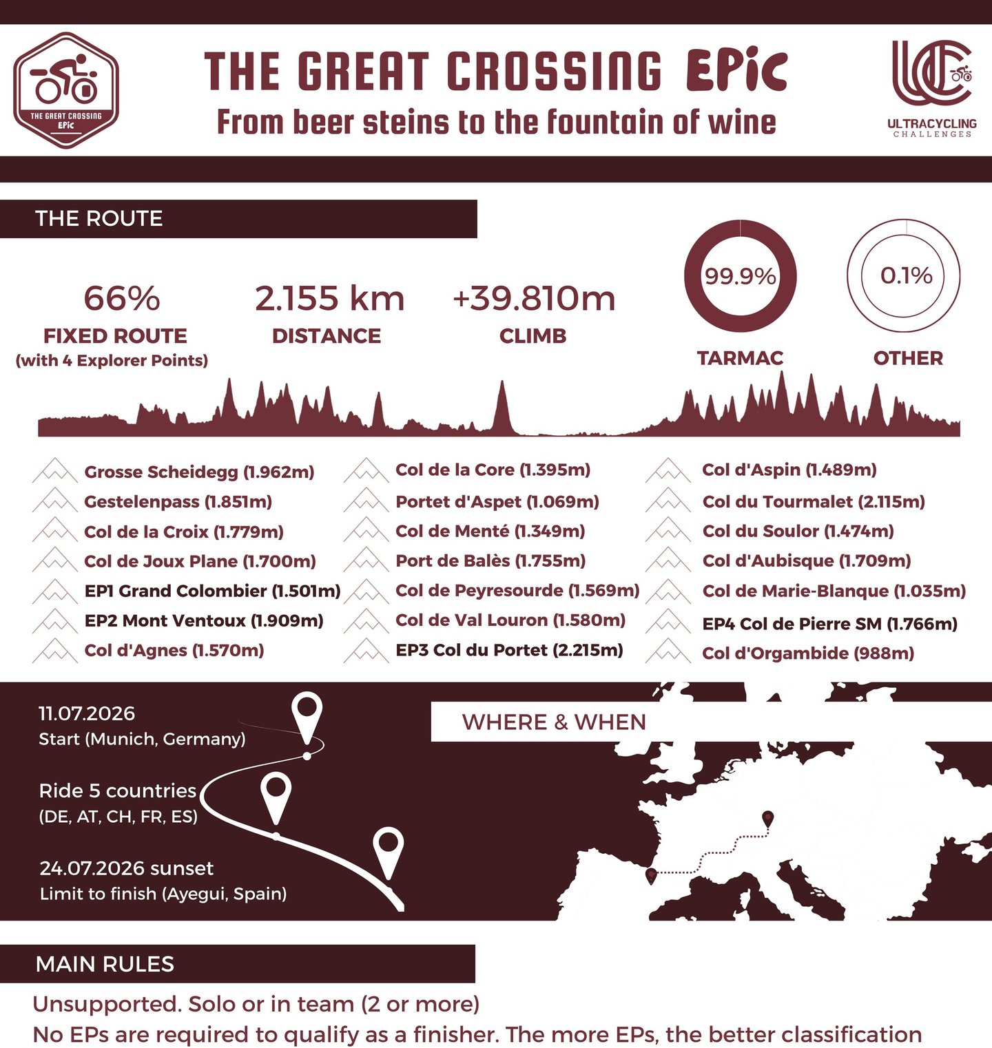 THE GREAT CROSSING EPIC is not just another ultracycling challenge. It is the ultimate test of endurance, strategy, and spirit across the very heart of Europe.